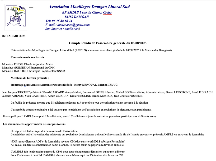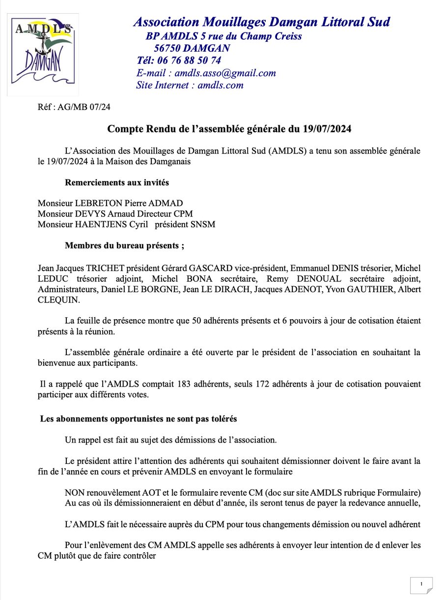 autorités administratives: municipalité de Damgan, affaires maritimes, DDE services maritimes, etc. ; gérer la liste d'attente des demandes de mouillages dans cet espace.